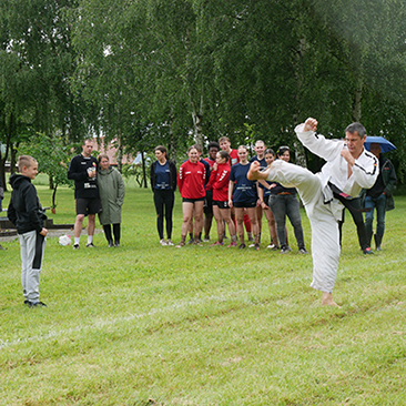Kontrolliertes Sparring stärkt wesentlich die eigene Körperkontrolle und hilft gefährliche Situationen zu umgehen, bzw. sich tatkräftig zu verteidigen.
